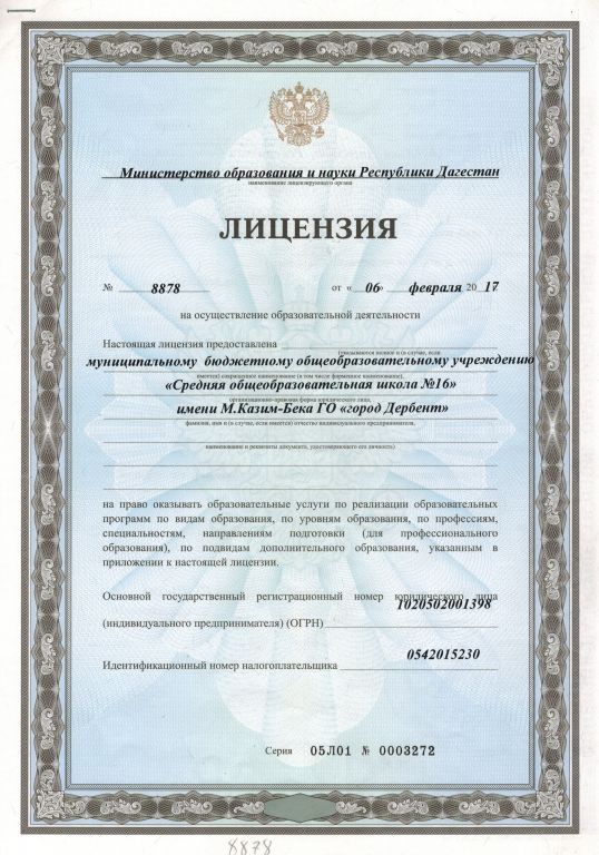 | Полное наименование образовательной организации* | Муниципальное бюджетное общеобразовательное учреждение "Средняя общеобразовательная школа № 16" имени М. Казим-Бека городского округа "город Дербент" Республики Дагестан |