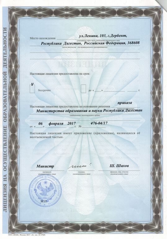 | Адрес местонахождения образовательной организации* | 368608, Республика Дагестан, г. Дербент, ул. Ленина, 103 |