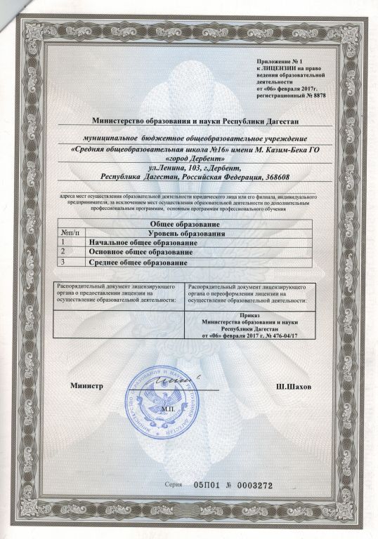 | Сокращенное наименование образовательной организации* | МБОУ "СОШ № 16" имени М. Казим-Бека |